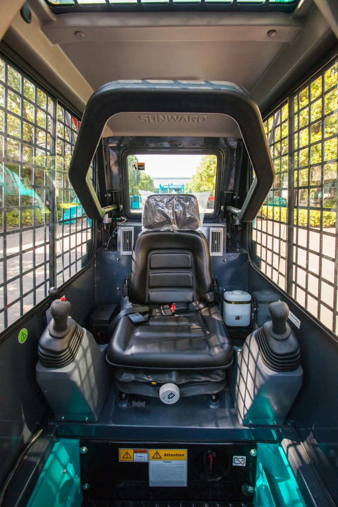Thanks to the suspended undercarriage system and the tracks, the Sunward SWTL4538 compact track loader offers excellent performance with outstanding drawbar power for operation on rough terrains like mulch, rock, or dirt. It is also highly versatile and compact enough to be easily maneuverable in small spaces. Despite its compact size, you will be impressed by the great breakout force and huge lift capacity.